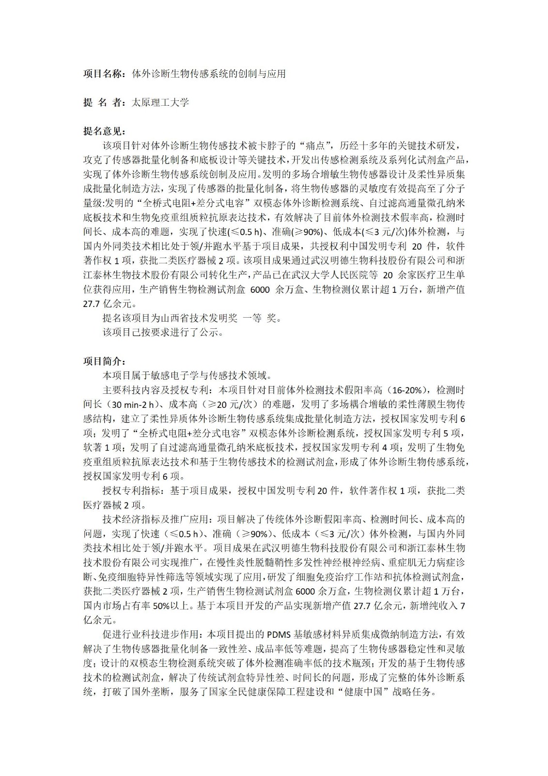 ƾ֤ɽÎ÷Ê¡¿ÆÑ§ÊÖÒÕÌü¹ØÓÚɽÎ÷Ê¡ÊÖÒÕ·¢Ã÷½±ÌáÃûÊÂÇéµÄÏà¹Ø»®¶¨£¬£¬£¬£¬£¬£¬bet365ÑÇÖÞΨһ¹ÙÍø¡¢Ì«ÔÀí¹¤´óѧ¡¢Î人Ã÷µÂÉúÎï¿Æ¼¼¹É·ÝÓÐÏÞ¹«Ë¾ºÏ×÷Ñз¢µÄ¿Æ¼¼Ð§¹û¡°ÌåÍâÕï¶ÏÉúÎï´«¸ÐϵͳµÄ´´ÖÆÓëÓ¦Óá±ÄâÌáÃû2024Äê¶ÈɽÎ÷Ê¡ÊÖÒÕ·¢Ã÷½±Ò»µÈ½±£¬£¬£¬£¬£¬£¬ÏÖÓèÒÔ¹«Ê¾¡£¡£¡£¡£¡£¹«Ê¾ÆÚ2024Äê12ÔÂ09ÈÕÖÁ2024Äê12ÔÂ15ÈÕ¡£¡£¡£¡£¡£